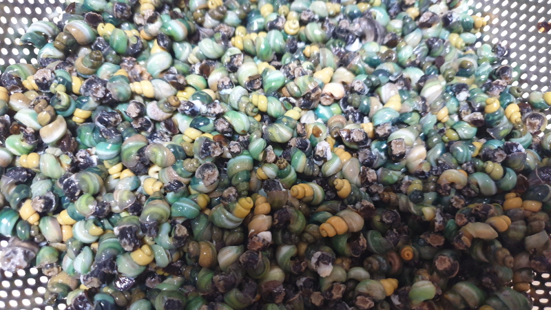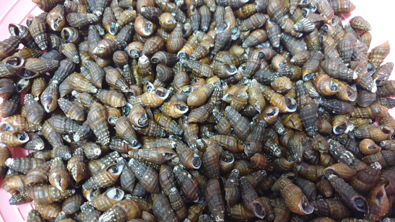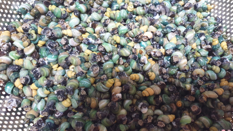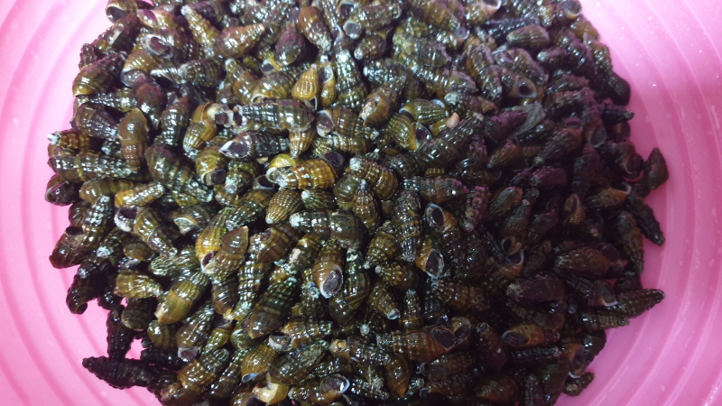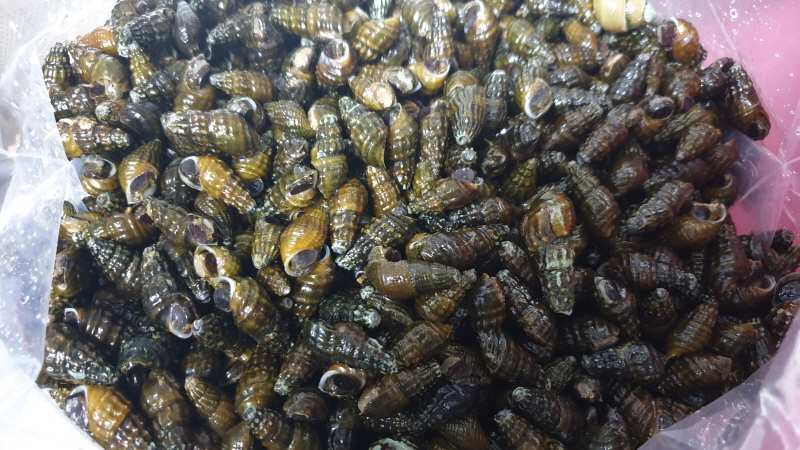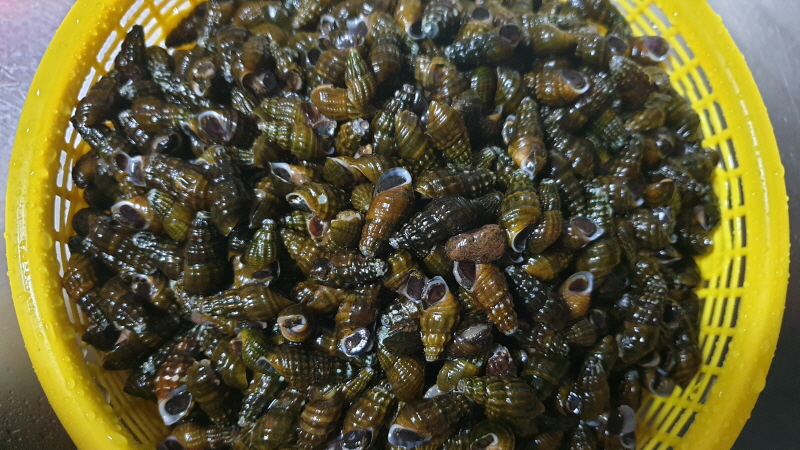 올갱이를 씻고 삶고 알맹이를 빼내는...