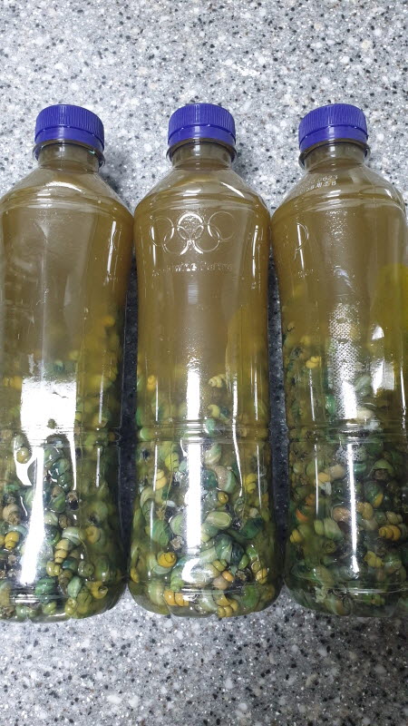 그리곤 삶은 물과 함께 병에 넣어 냉동실에 보관 했습니다.