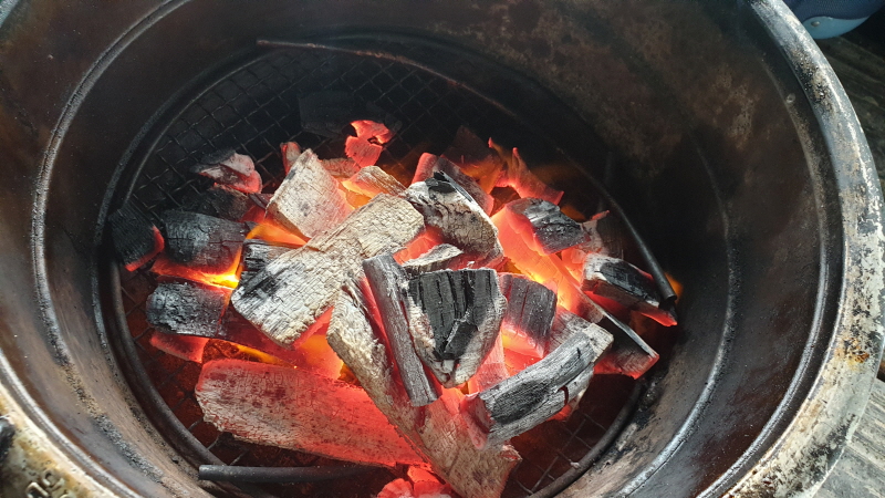 물가에서 그것도 숯불에 구워먹는 고기...