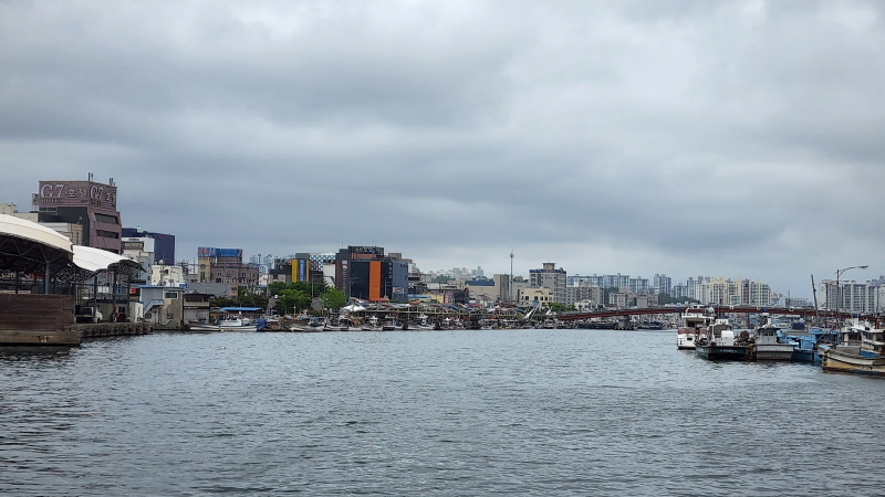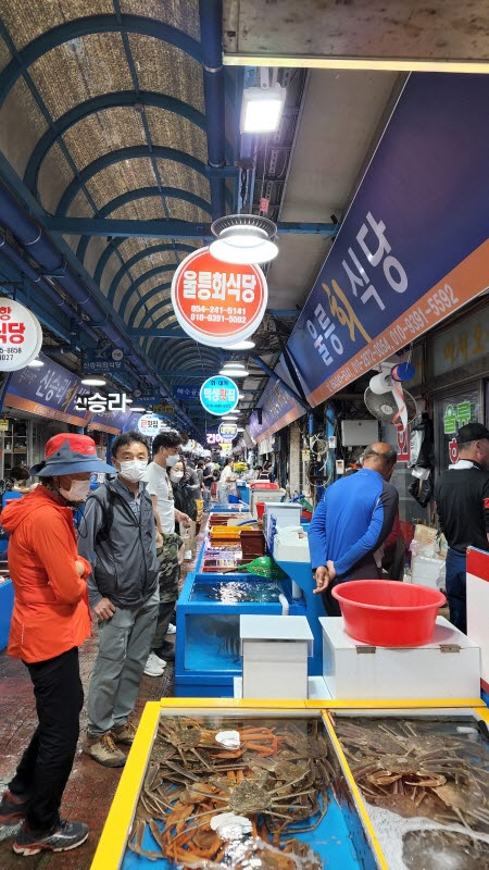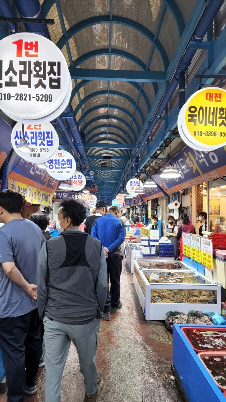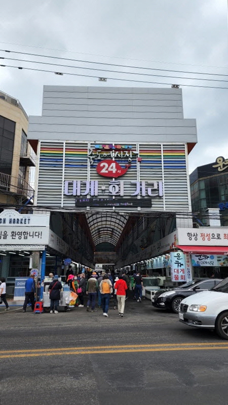 주차장 도착, 곧장 죽도시장으로 점심을 먹으러 갔습니다.
