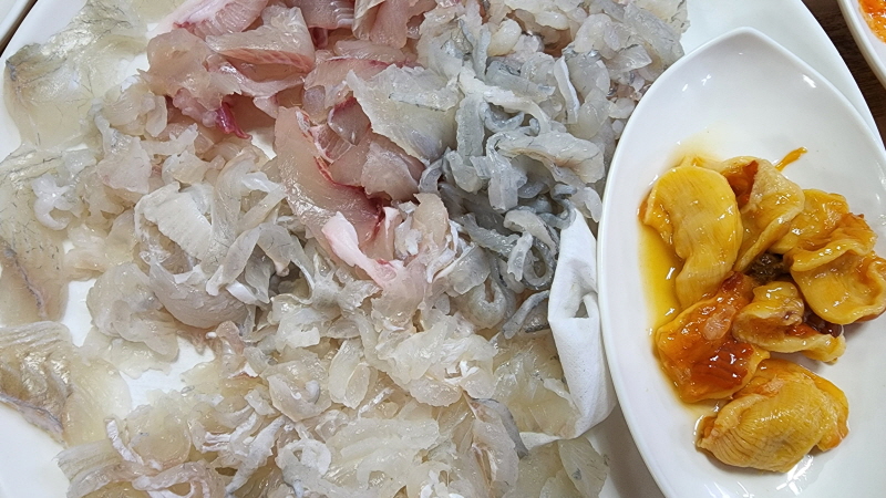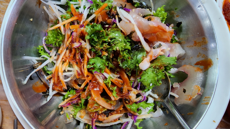 회를 실컷 먹고 그리고 그 남은 회를 야채와 함께 비벼도 먹고 매운탕도 끊여 먹고