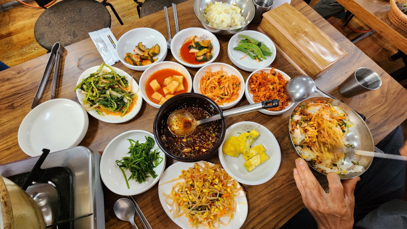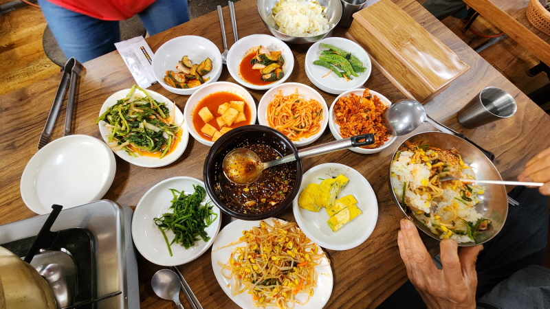 콩나물밥은 맛있는 간장 하나만 있어도 되는데 반찬이 엄청하네요.