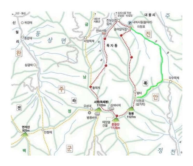 내처사동에서 동봉~운장산~서봉~도로~내처사동(1)을 걸을것인지