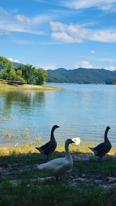 거위들과 한참을 놀다가 집으로 돌아 왔습니다.