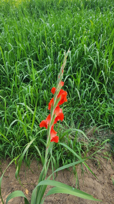 글라디올러스가 붉은색도 있고 노랑색도 있네요.