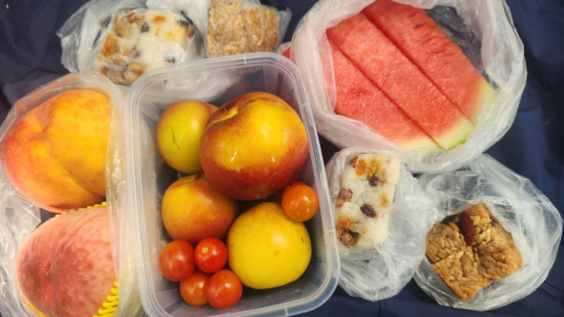함박산정상에서 가져간 간식을 먹곤 하산 길에 올랐습니다.
