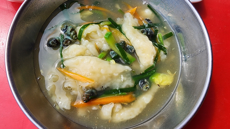 올갱이 수제비 2인분을 주문하고...