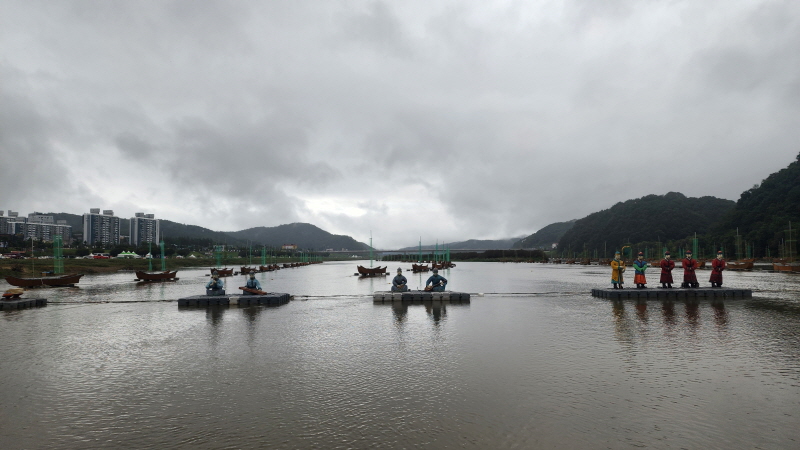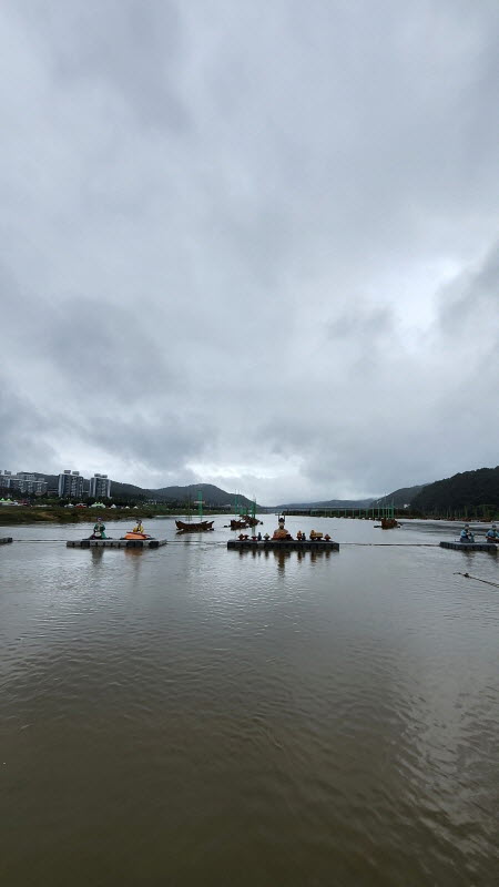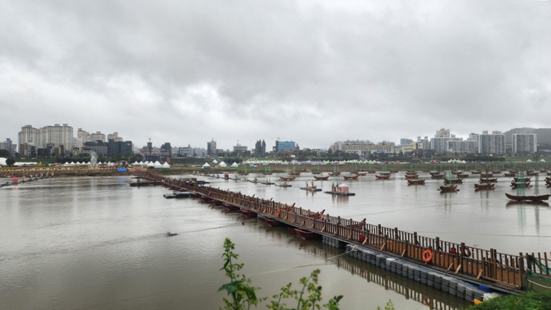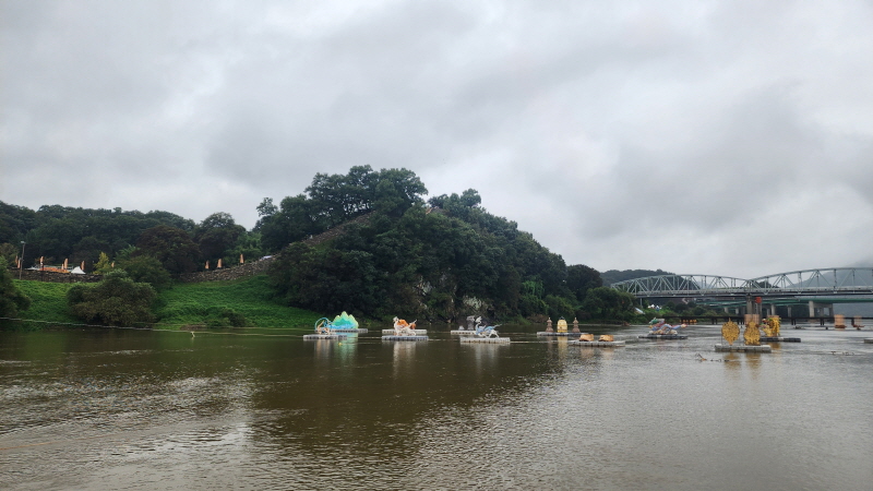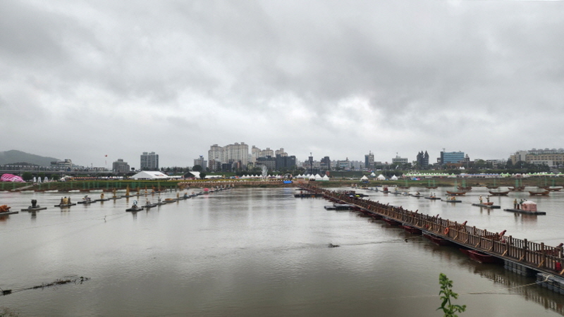 공산성에서 바라본 부교와 미르섬 입니다.