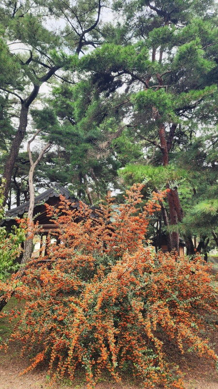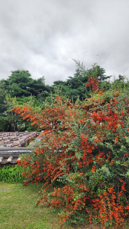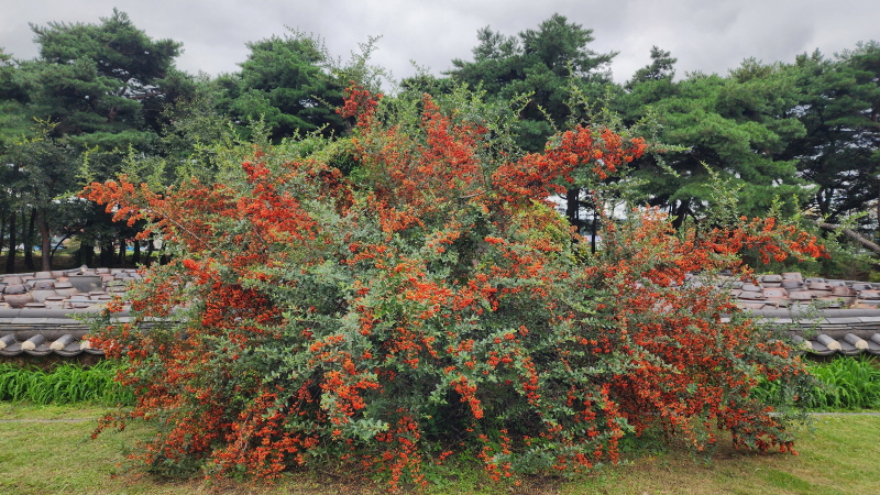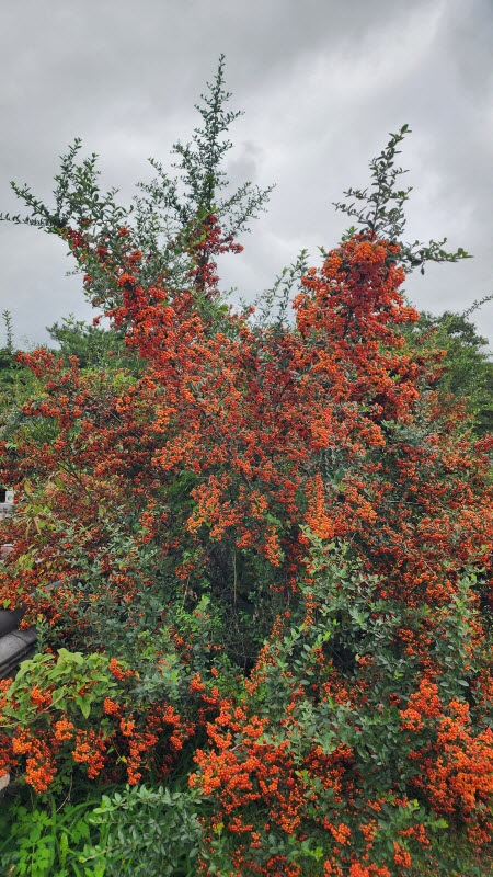 피라칸타 열매가 마치 꽃 같네요.