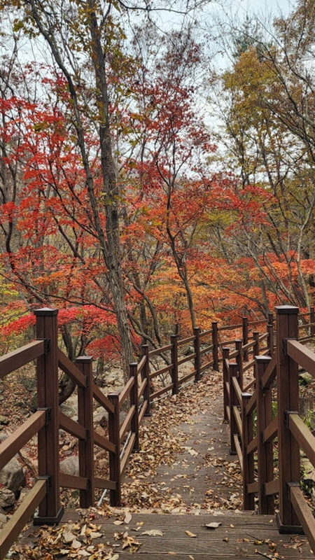 하산 길엔 낙엽이 많이 쌓여 길이 헷갈리더라구요. ㅠ