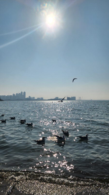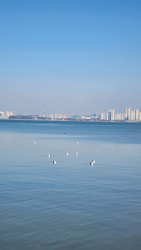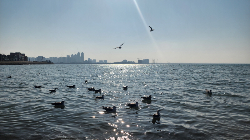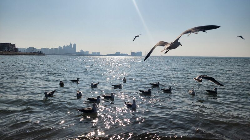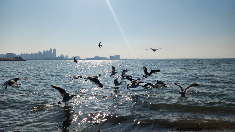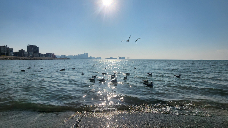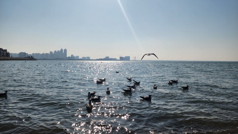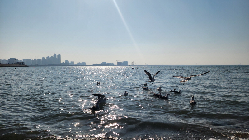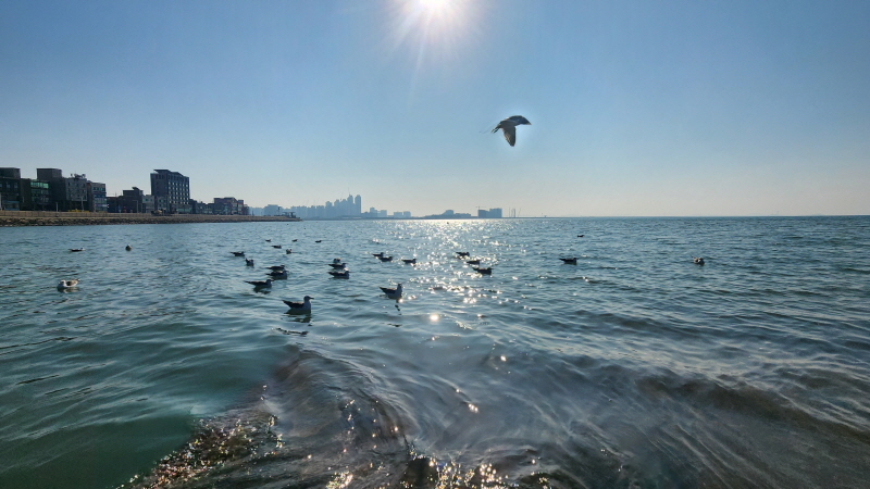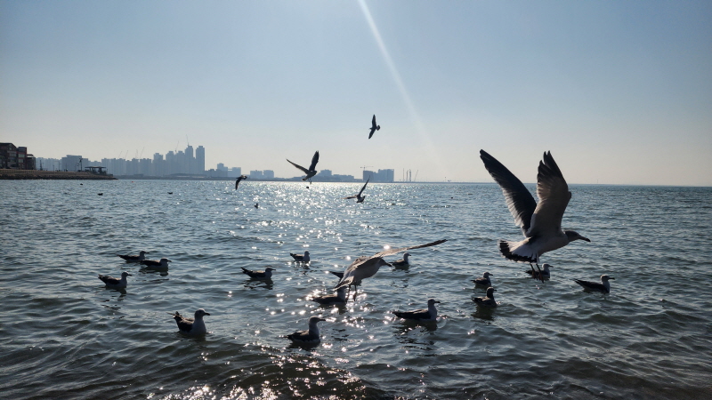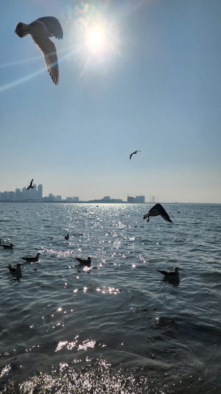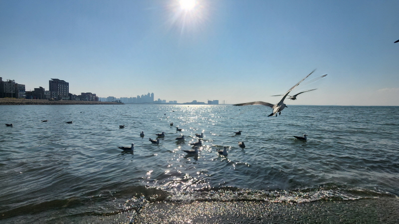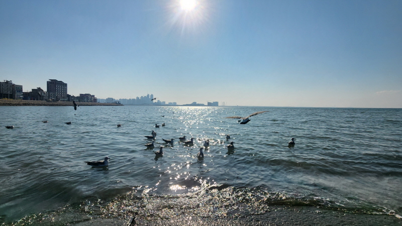 햇살 좋은 바닷가에 앉아 갈매기들과 잠시 놀았습니다.
