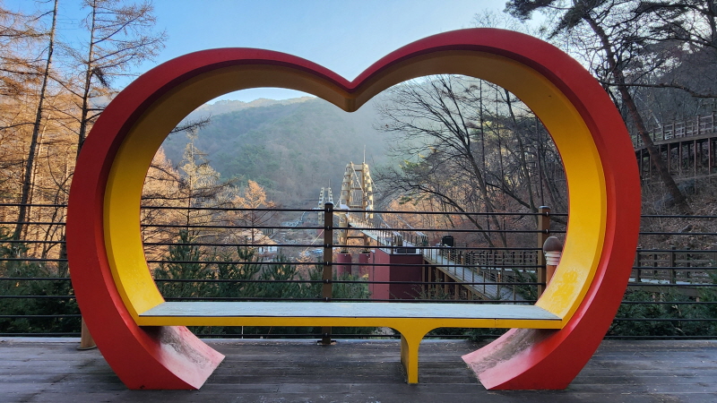 좀전에 건너온 명상구름다리가 한눈에 내려다 보였습니다.
