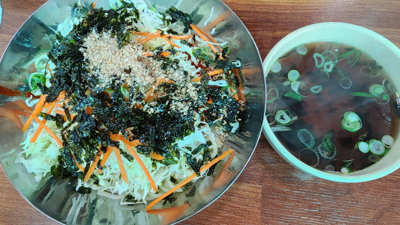 손녀는 물쫄면을 먹고 햇살인 비빔쫄면을 먹었습니다.