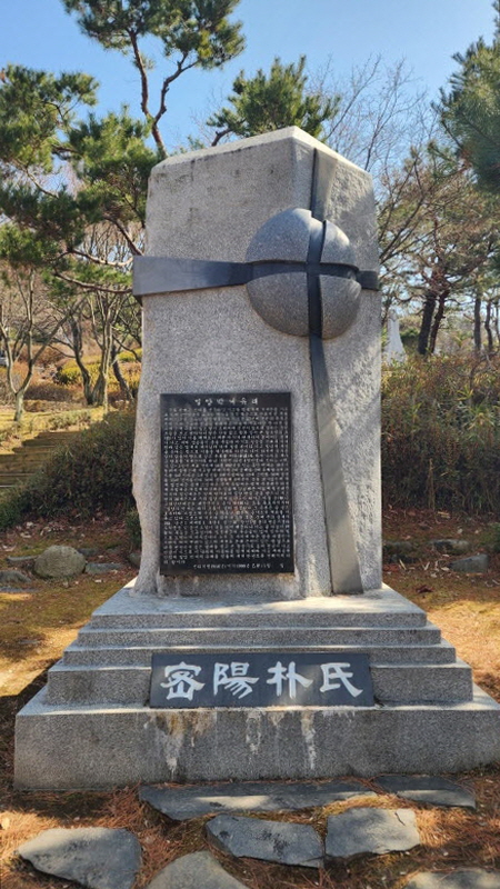 이 곳 밀양박씨 표석에서 기념 사진을 찍고...