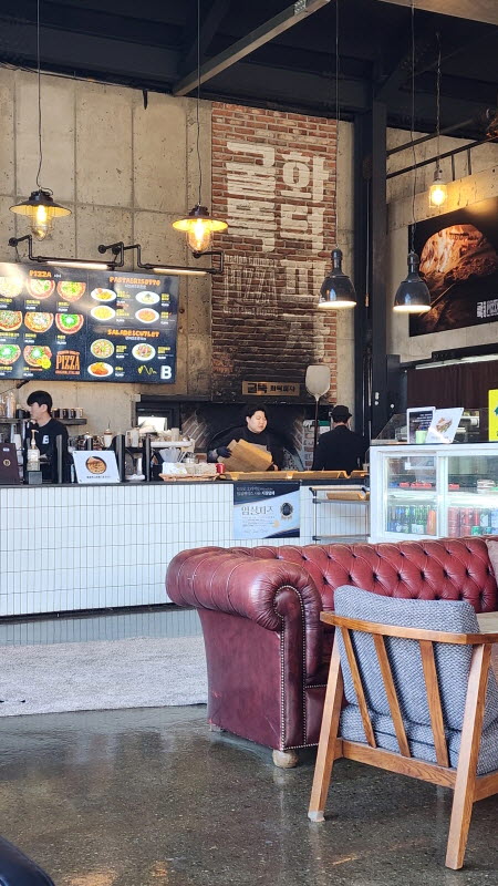 그리곤 손주들은 파스타를 주문하고 햇살인 굴뚝피자를 주문 했습니다.