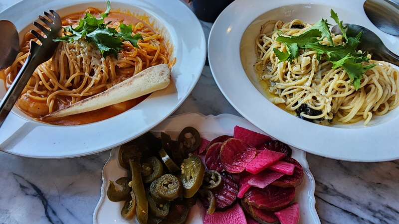 왼쪽은 손녀가 주문한 파스타이고 오른쪽은 손자가 주문한 파스타인데