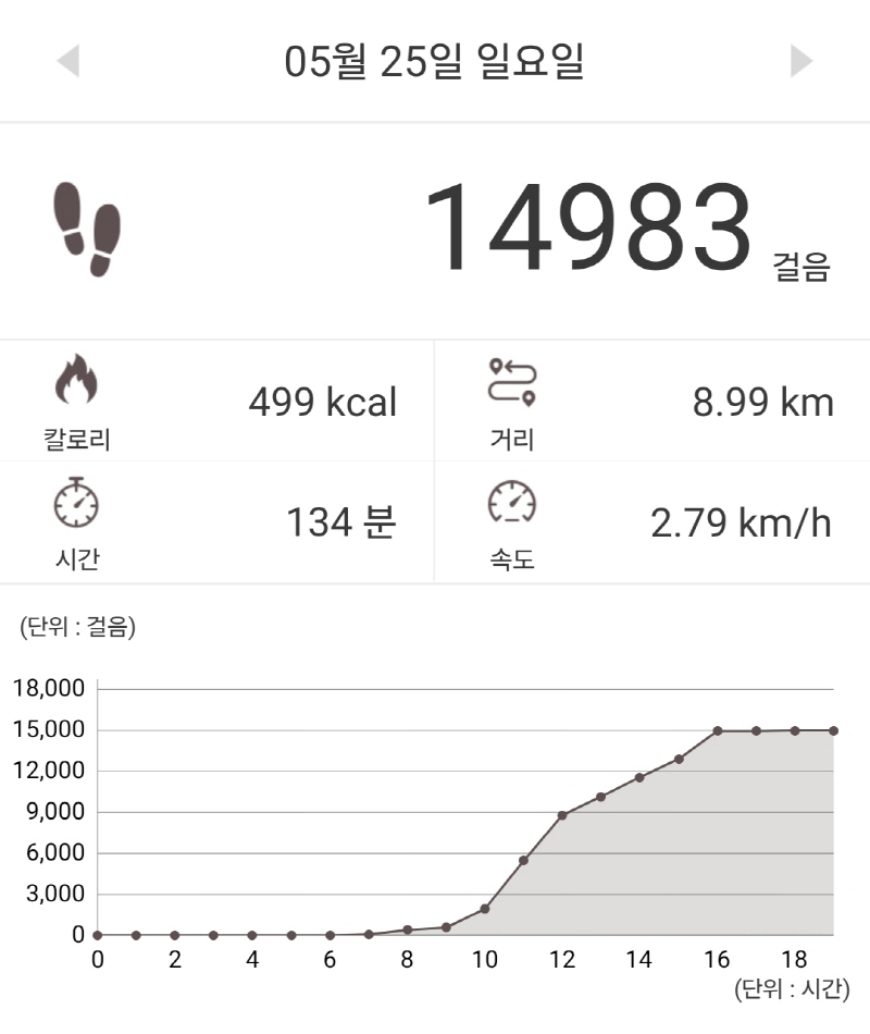 오늘은 8.99km에 14,983보를 걸었네요.